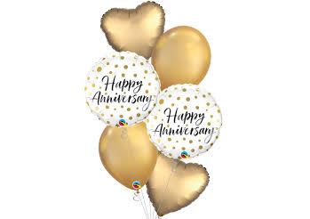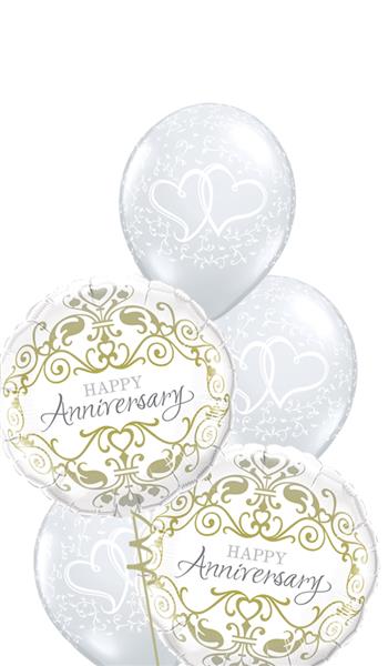 Make this anniversary extra special with a selection of five floating foil balloons presented in a 5 balloon bouquet.
